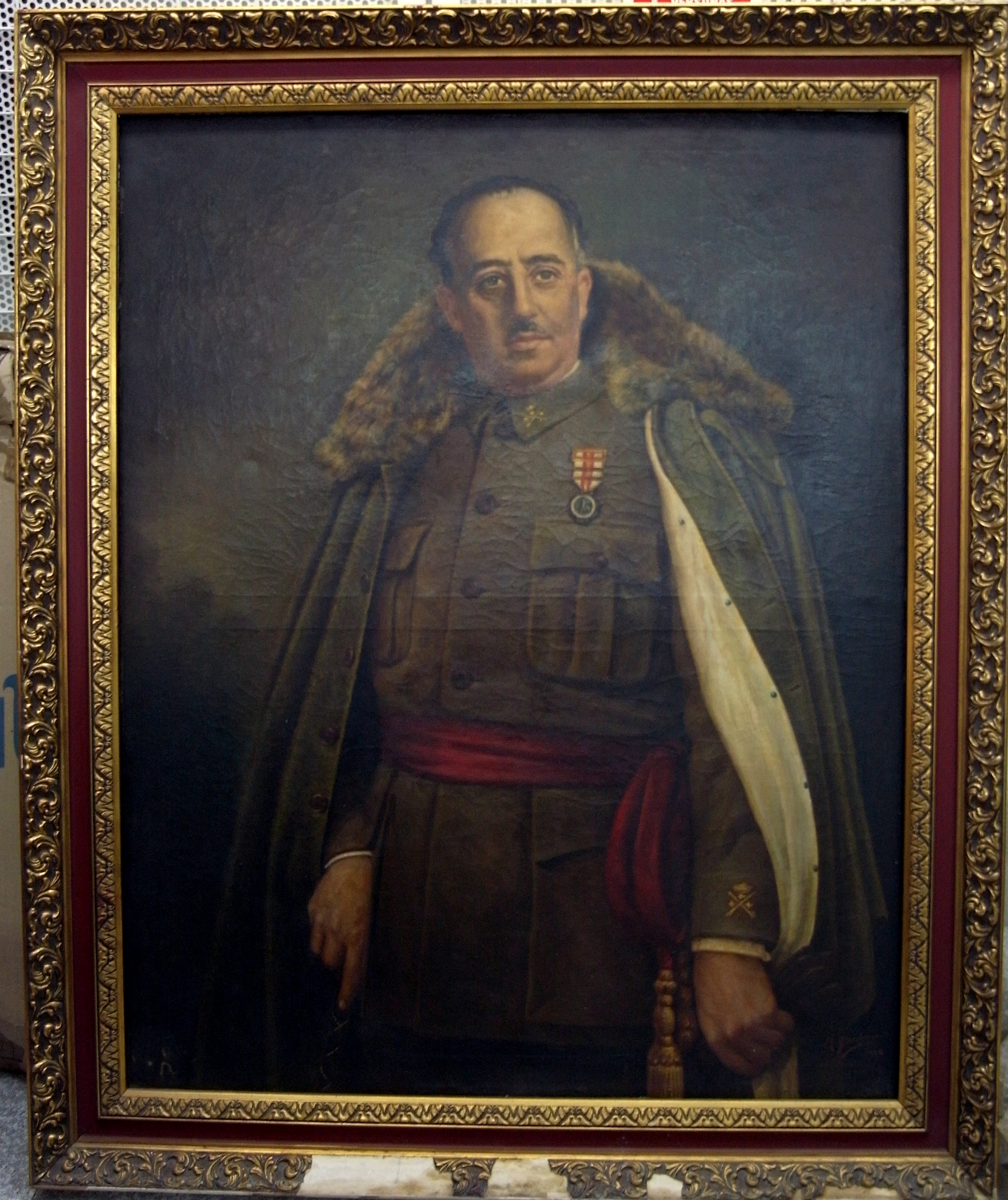 Retrato de Franaco. Al parecer, formaba parte de una cornucopia que se encuentra, igualmente, en el Archivo. Está enmarcado, pero las medidas del lienzo corresponden con las de la cornucopia.