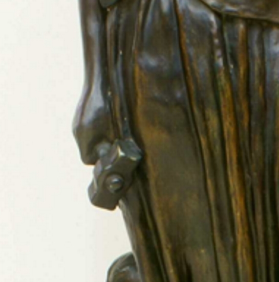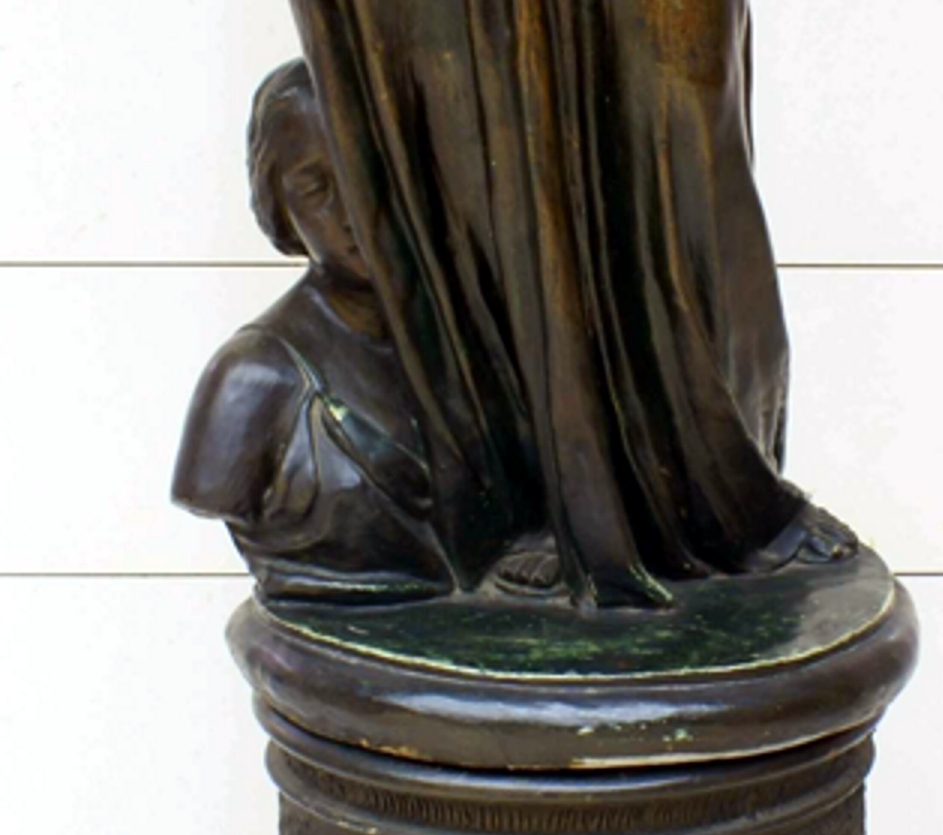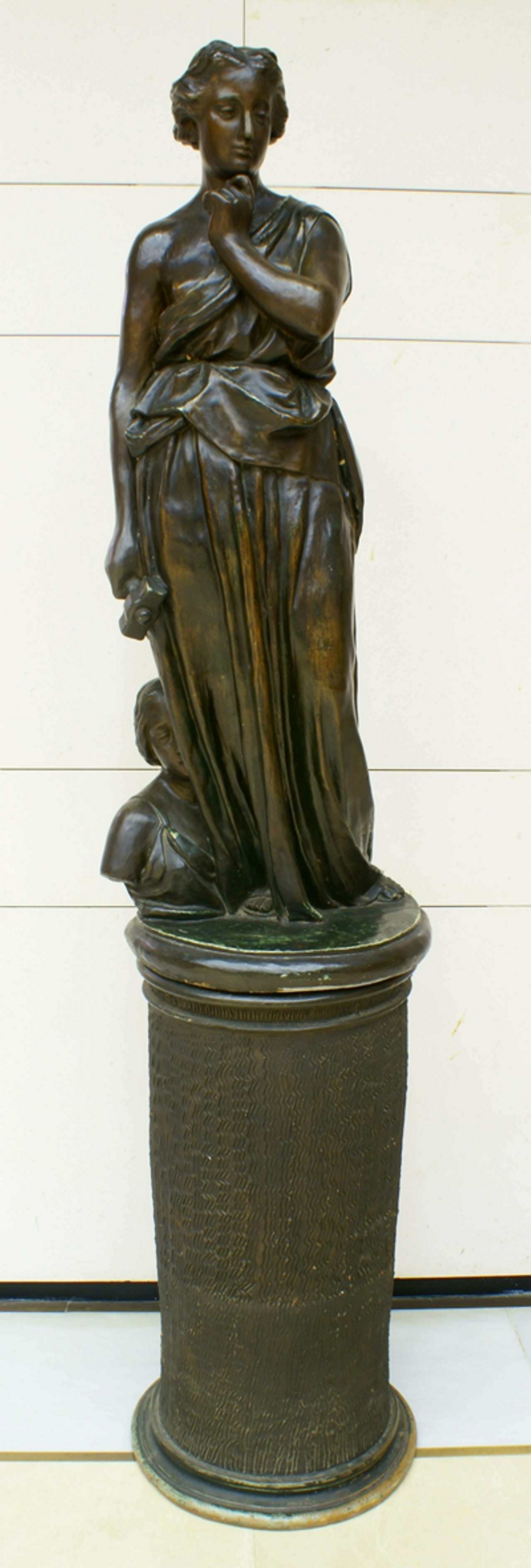 Escultura alegórica que se conserva en la Diputación desde antiguo. Representación femenina con martillo en la mano